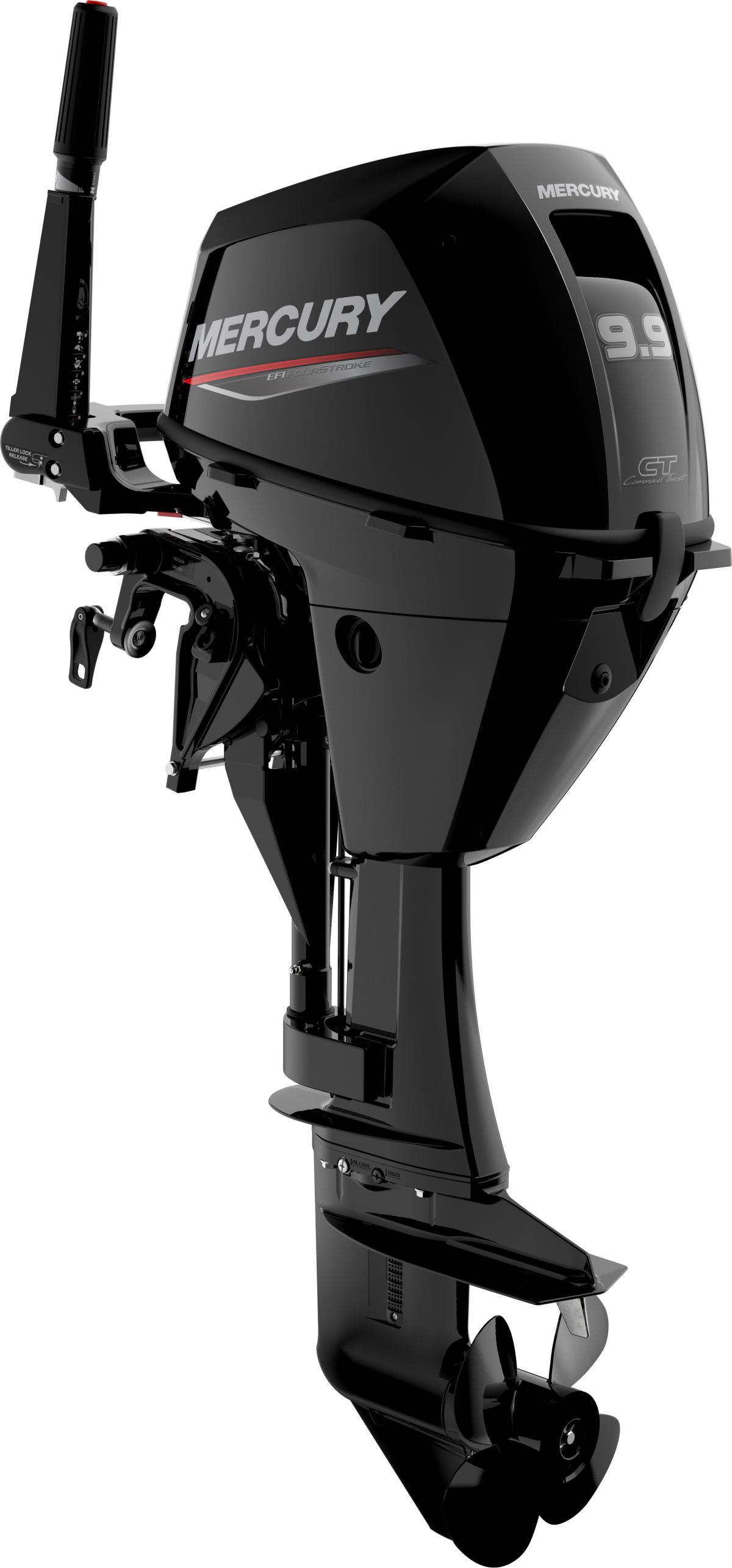 Modeller med styrehåndtag inkluderer Mercurys eksklusive multifunktions-styrehåndtag, der giver dig fuld kontrol med bare én enkelt hånd: Gear, gas (med friktion for finjusteret trolling), stop, tilt og styring.
